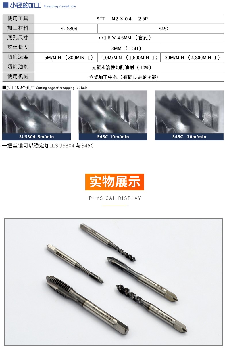 M2.5×0.45 CPM通孔型先端槽机用丝锥 适用于粉末冶金不锈钢钛合金