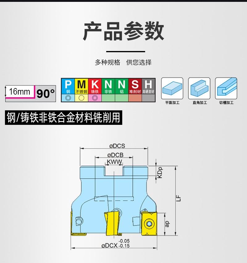 海纳H490 F90AX-50加工中心直角快进给铣刀盘硬质合金涂层刀片