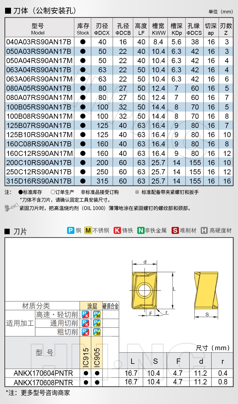 海纳H490 F90AX-160加工中心直角快进给铣刀盘硬质合金涂层刀片
