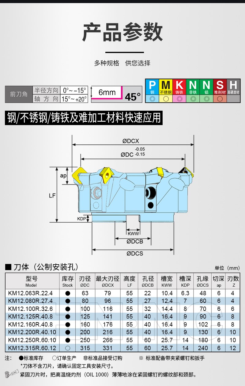 海纳KM12.125R.40.8 平面45度微调精加工镜面铣刀盘