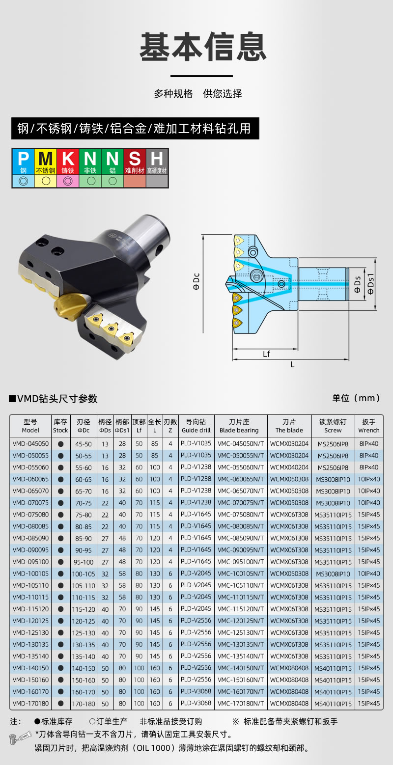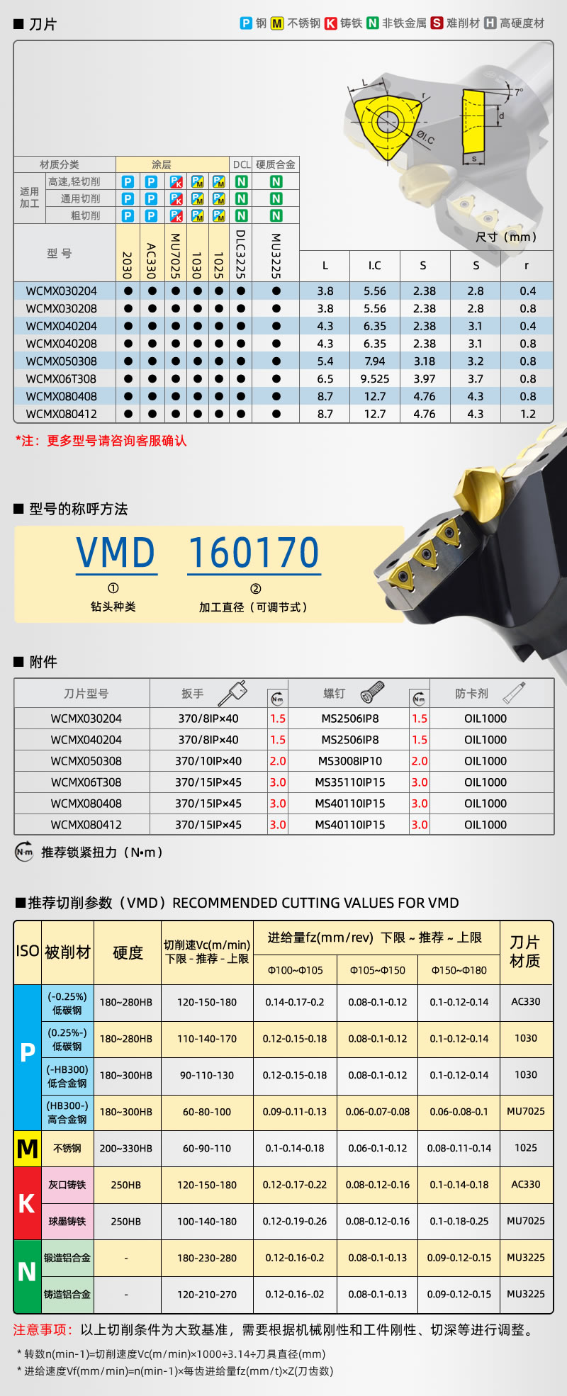 海纳带定心U钻VMD-160170 深孔大直径暴力钻头快速可转位大钻头