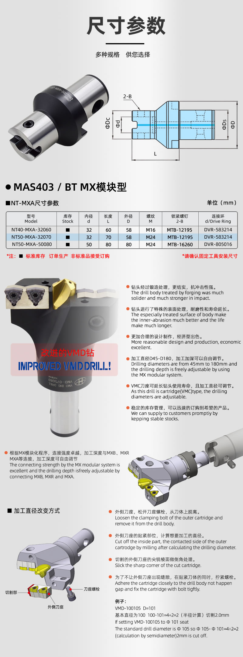 海纳NT50-MXA-50080M VMD钻头专用刀柄