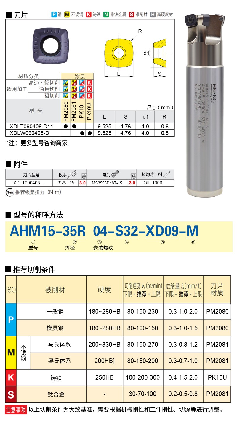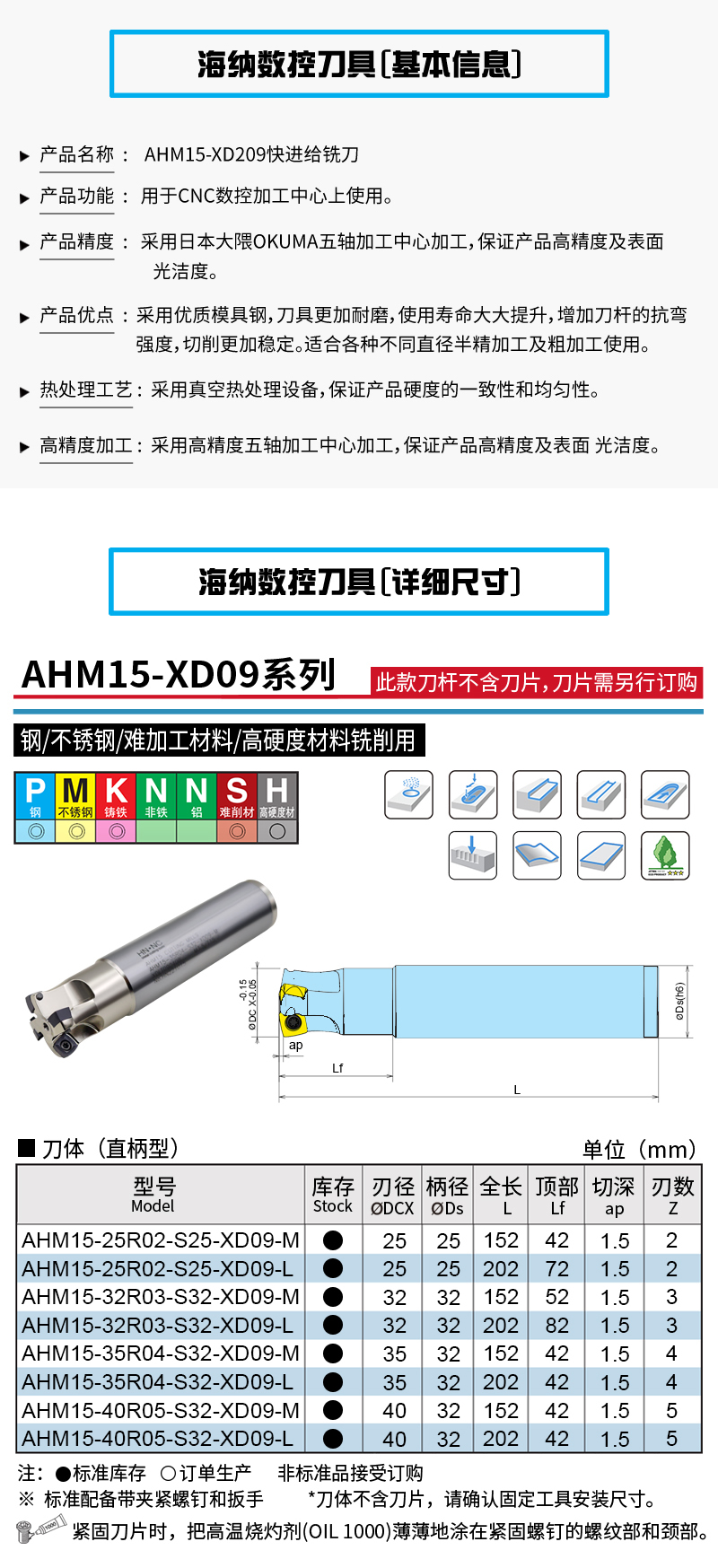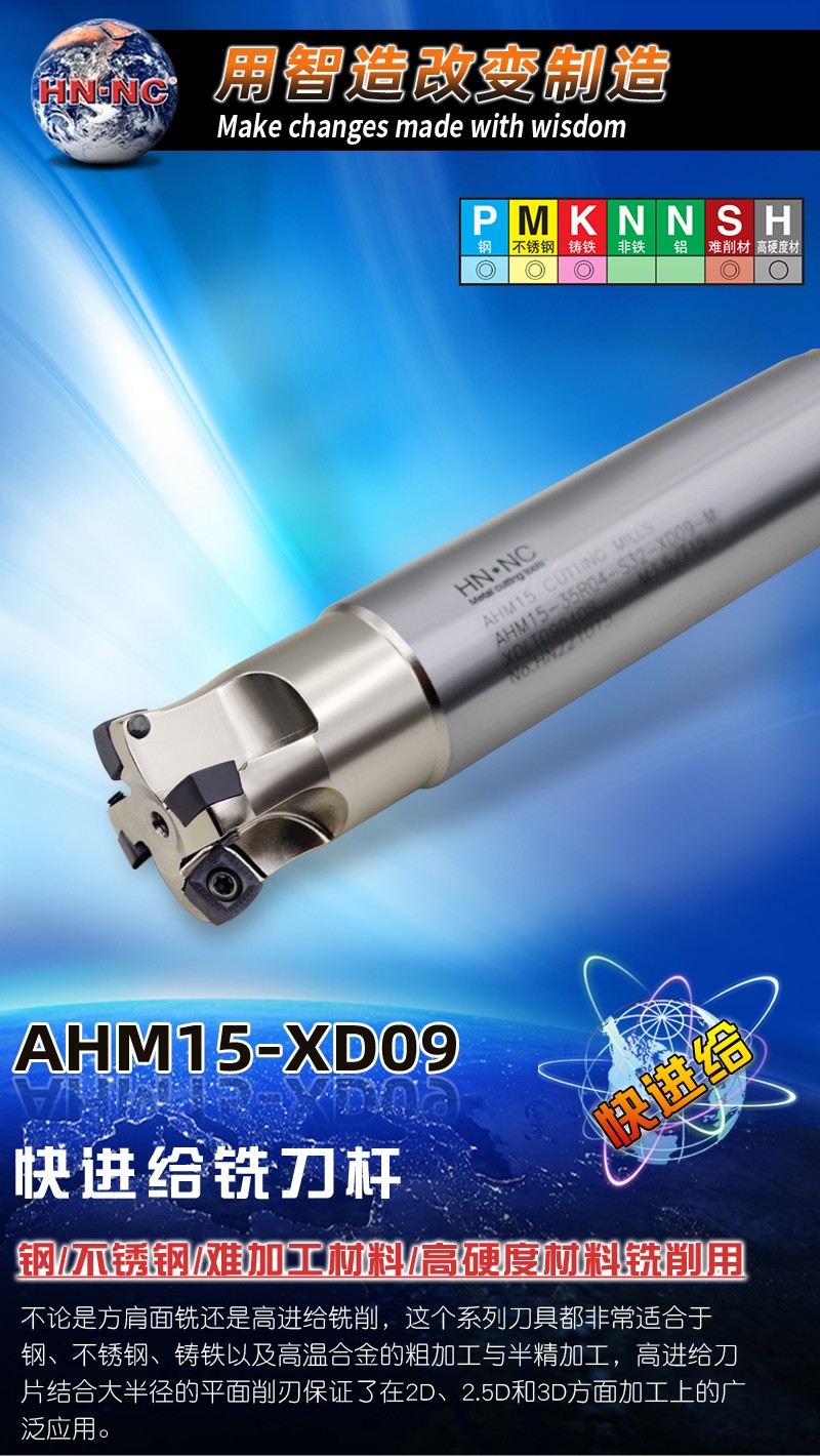 海纳AHM15-XD09加工中心快进给插铣刀杆XDLT090408合金刀片