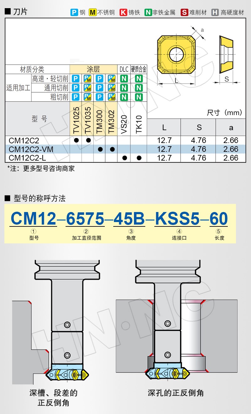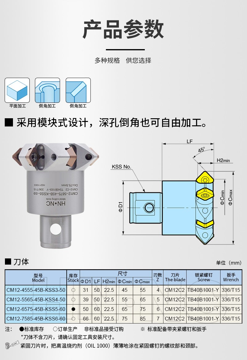 海纳CM12-5565-45B-KSS4-50小旋风倒角铣刀 CM12C2铣刀片