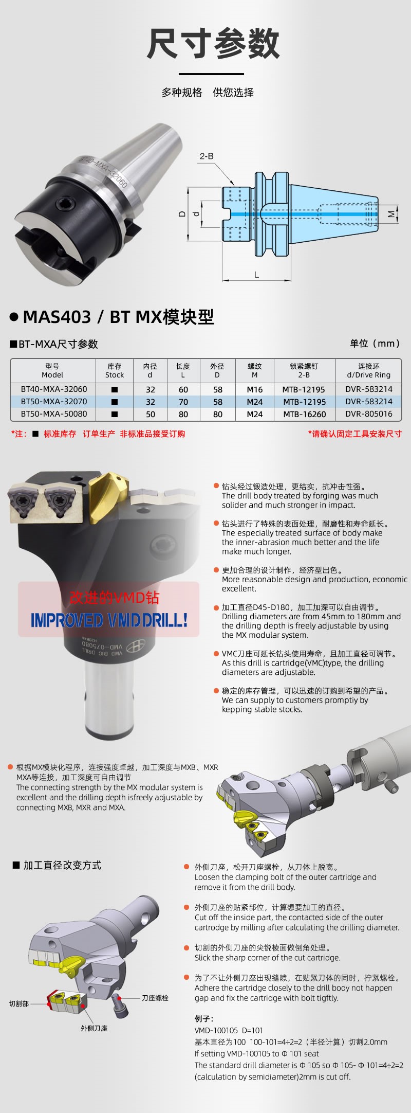 海纳BT40-MXA-32060 VMD钻头专用刀柄