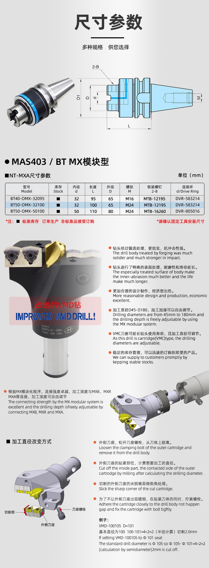 海纳BT50-OMX5832-130 VMD钻头专用刀柄